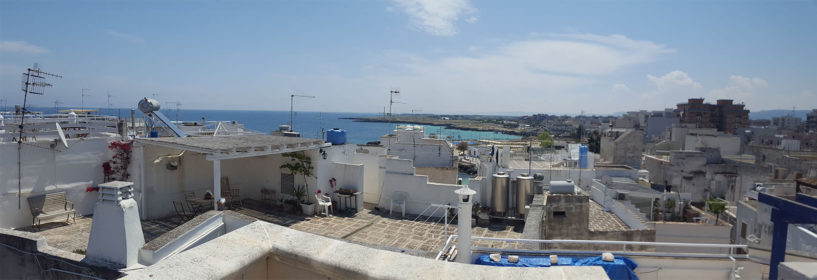 La casa è situata a Monopoli, sull’Adriatico, uno dei porti più attivi e popolosi della regione. Il suo caratteristico centro storico di origine alto-medievale, sovrapposto ai resti di un abitato messapico fortificato già nel V secolo a.C., si affaccia sul mare circondato da alte mura.